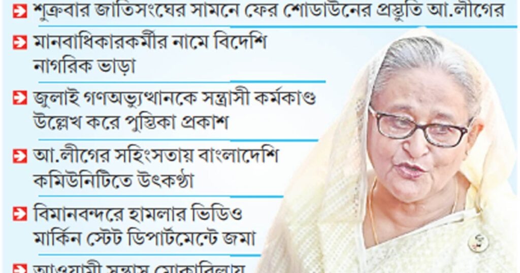 হাসিনার নির্দেশনার পর বাংলাদেশে কার্যক্রমনিষিদ্ধ আওয়ামী লীগ নেতাকর্মীরা প্রধান উপদেষ্টা ও তার সফরসঙ্গী রাজনৈতিক নেতাদের হেনস্তার প্রকাশ্য ঘোষণা দিয়েছেন। আজ শুক্রবার প্রধান উপদেষ্টার ভাষণকে কেন্দ্র করে জাতিসংঘ সদর দপ্তরের সামনে ব্যাপক উপস্থিতি ঘটানোর মাধ্যমে বিশৃঙ্খলা সৃষ্টির পরিকল্পনা করেছে যুক্তরাষ্ট্র আওয়ামী লীগ। এদিকে গত বুধবার রাতে আওয়ামী সন্ত্রাসীরা হোটেল লবিতে গিয়ে এনসিপি নেতা আখতার হোসেনকে গালিগালাজ ও হত্যার হুমকি দেন। আখতার এটিসহ বিমানবন্দরে হামলার ঘটনা উল্লেখ করে নিউ ইয়র্কের স্থানীয় একটি থানায় মামলা করেছেন।